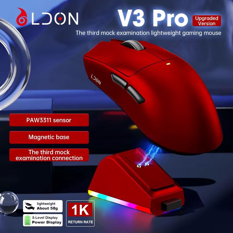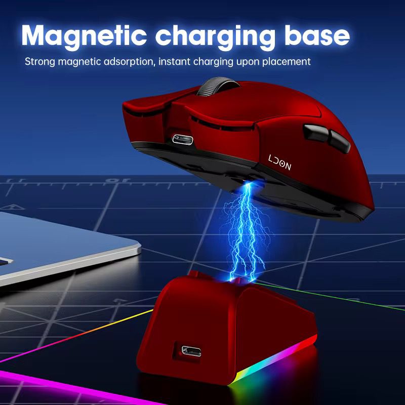 LDON V3 PRO WIRELESS GAMING MOUSE WITH CHARGING DOCK – RED